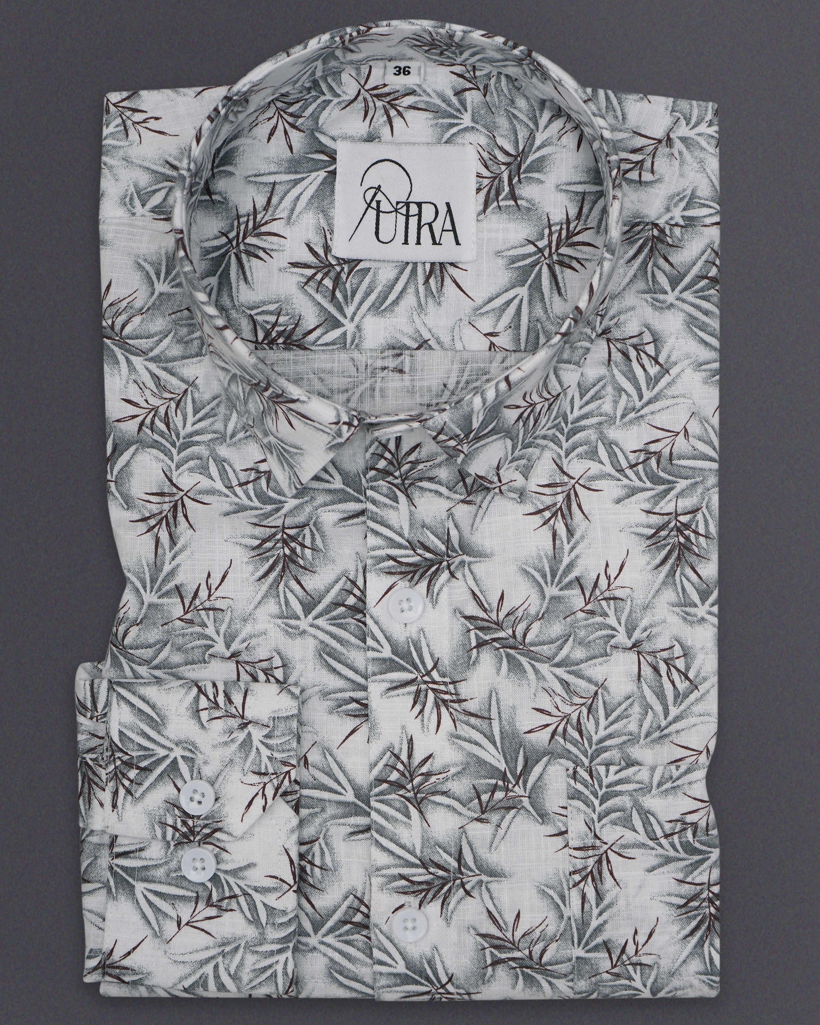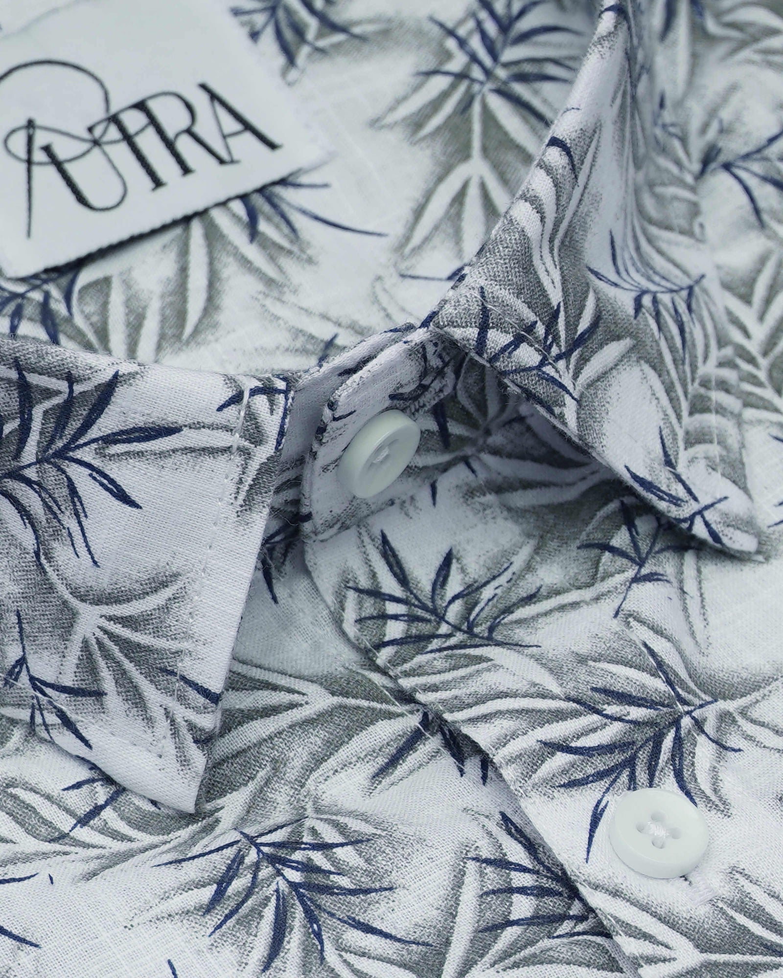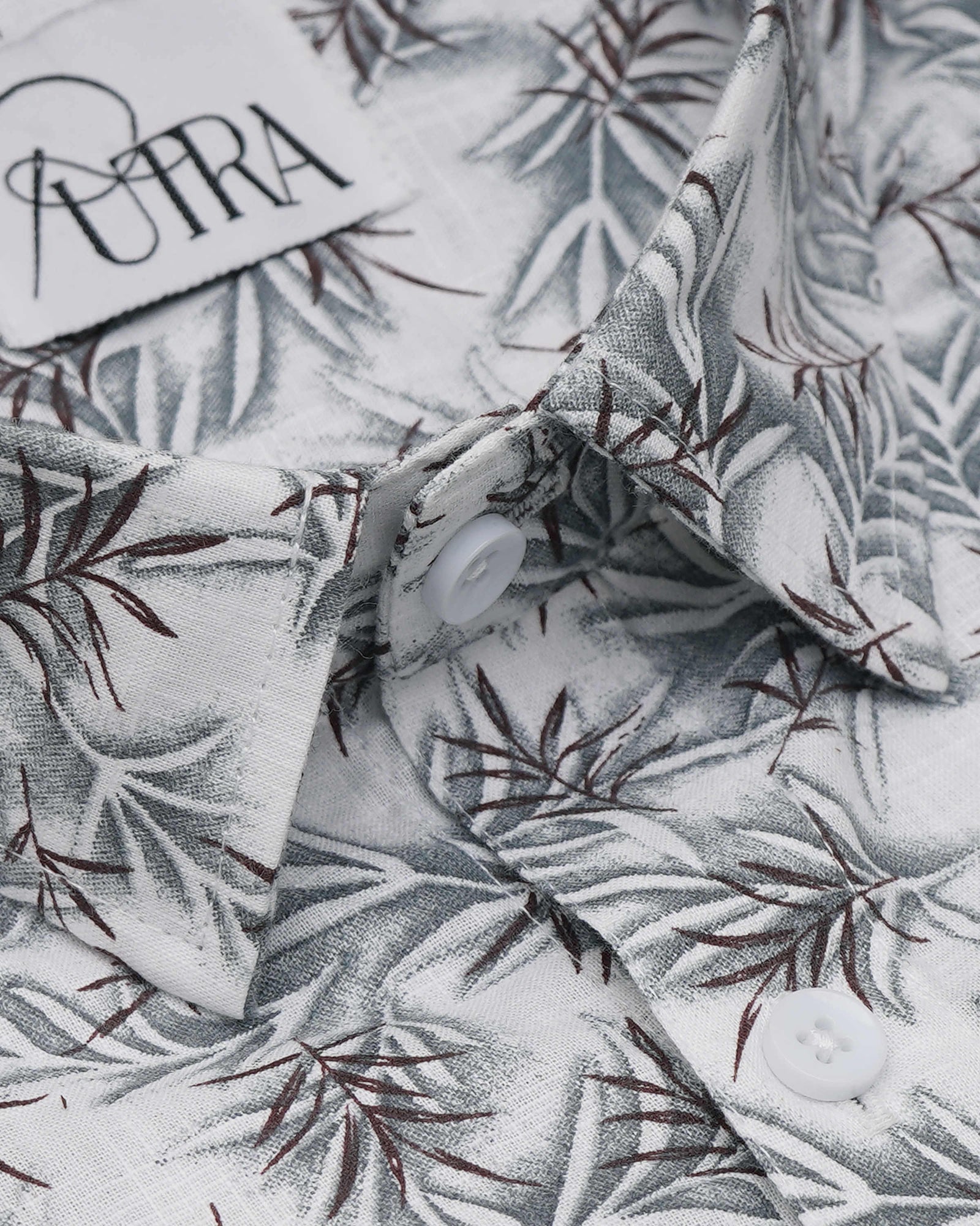 White Cotton Shirt with Leaf Pattern