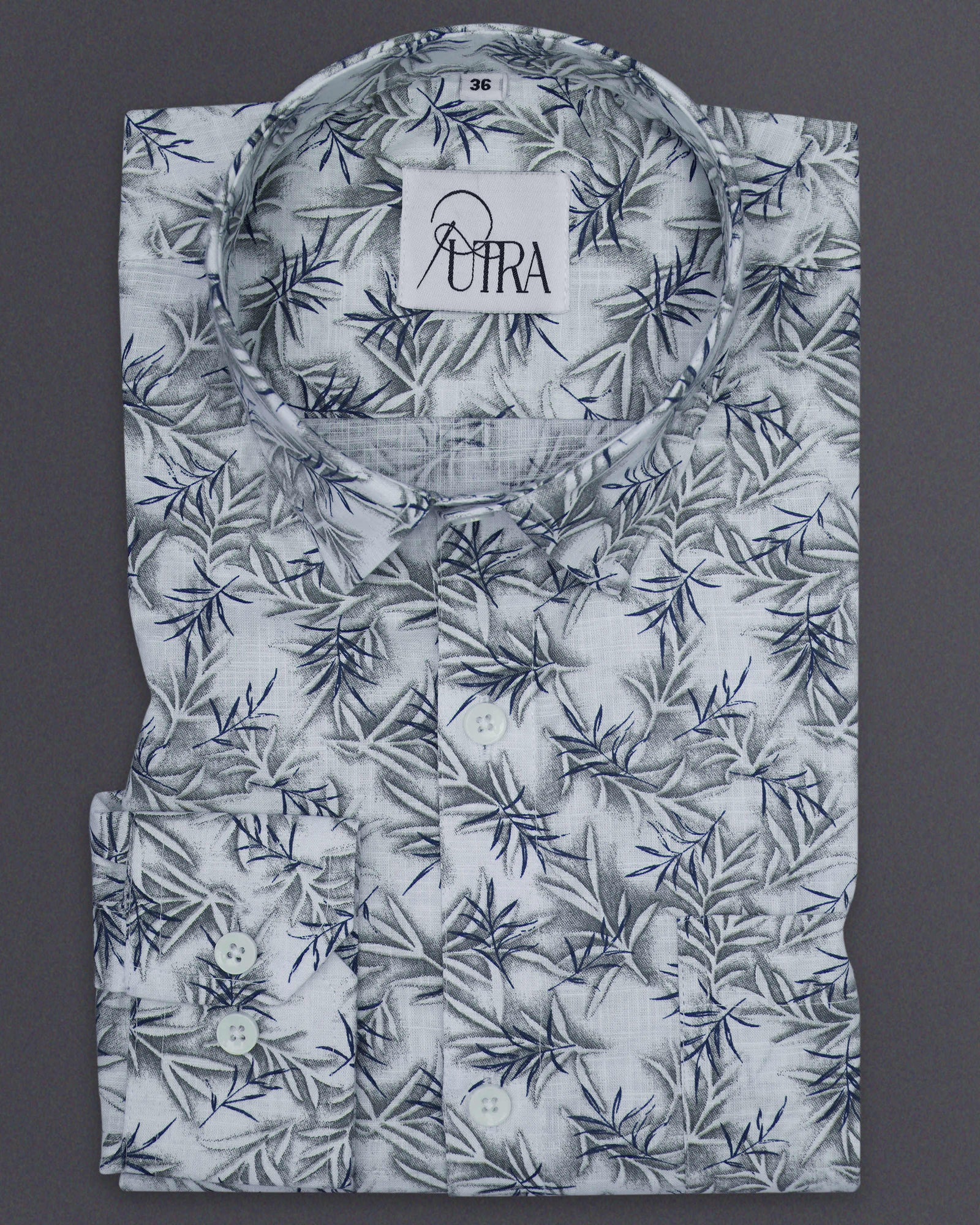 Dark Blue Shirt with Botanical Leaf Print
