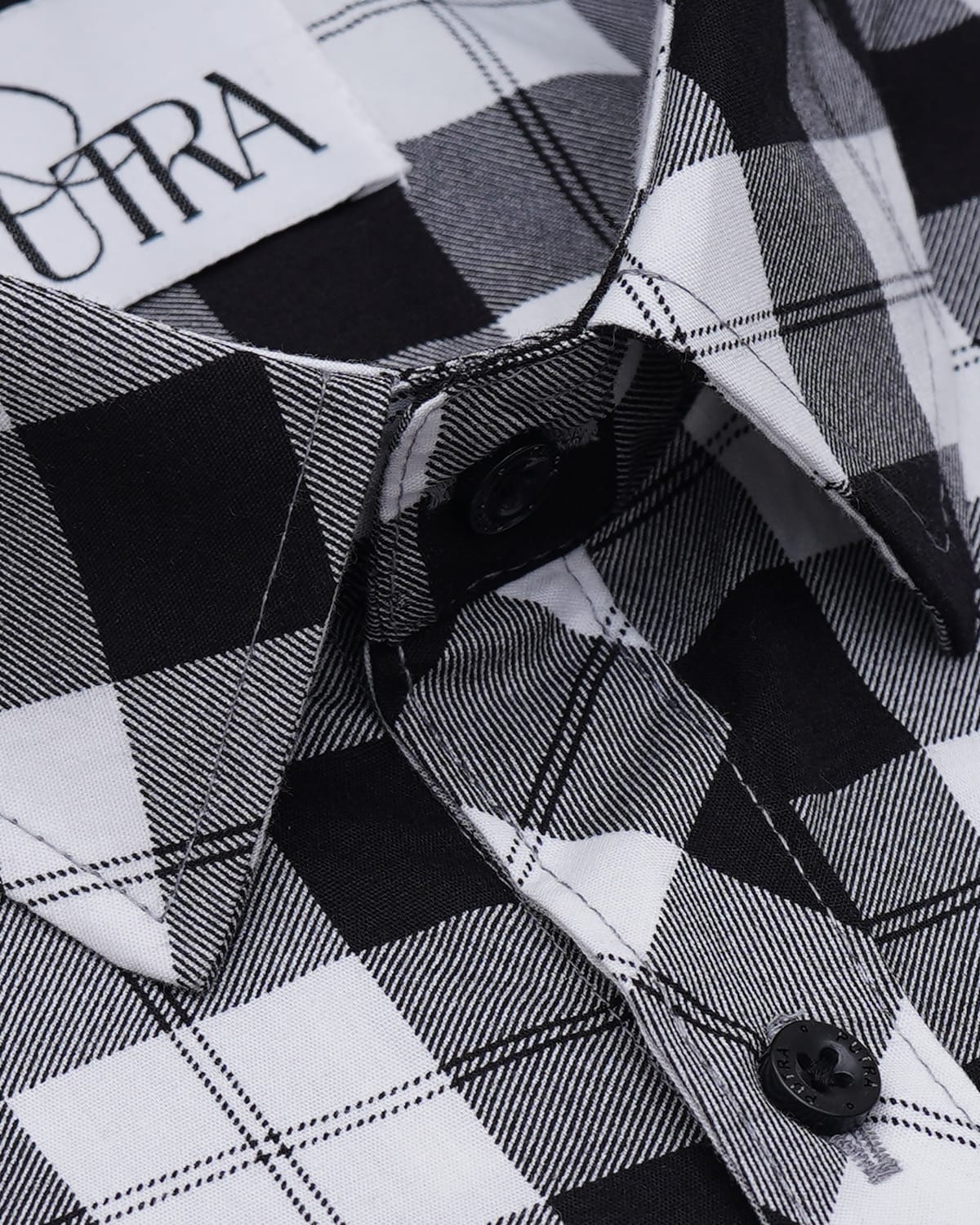 Men Black and white checked cotton shirt
