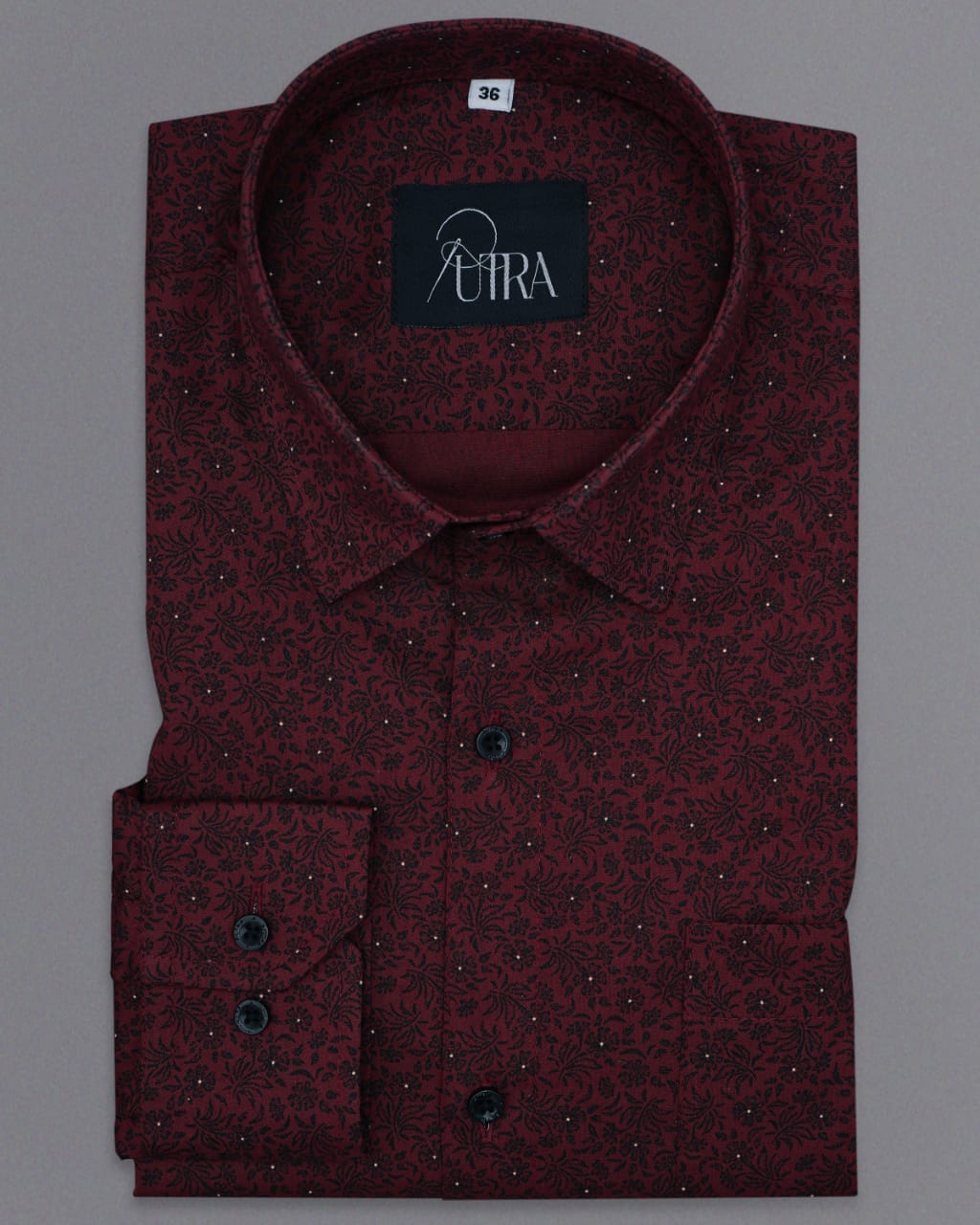 Maroon Shirt with Black Floral Patterns ji