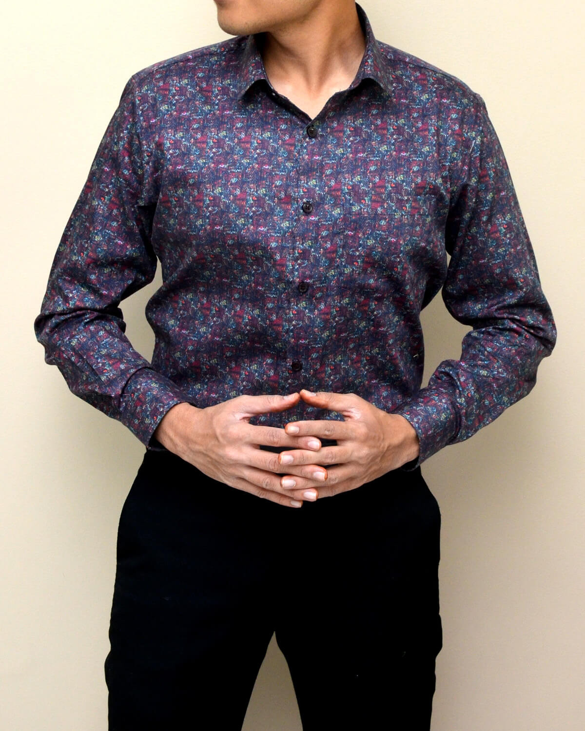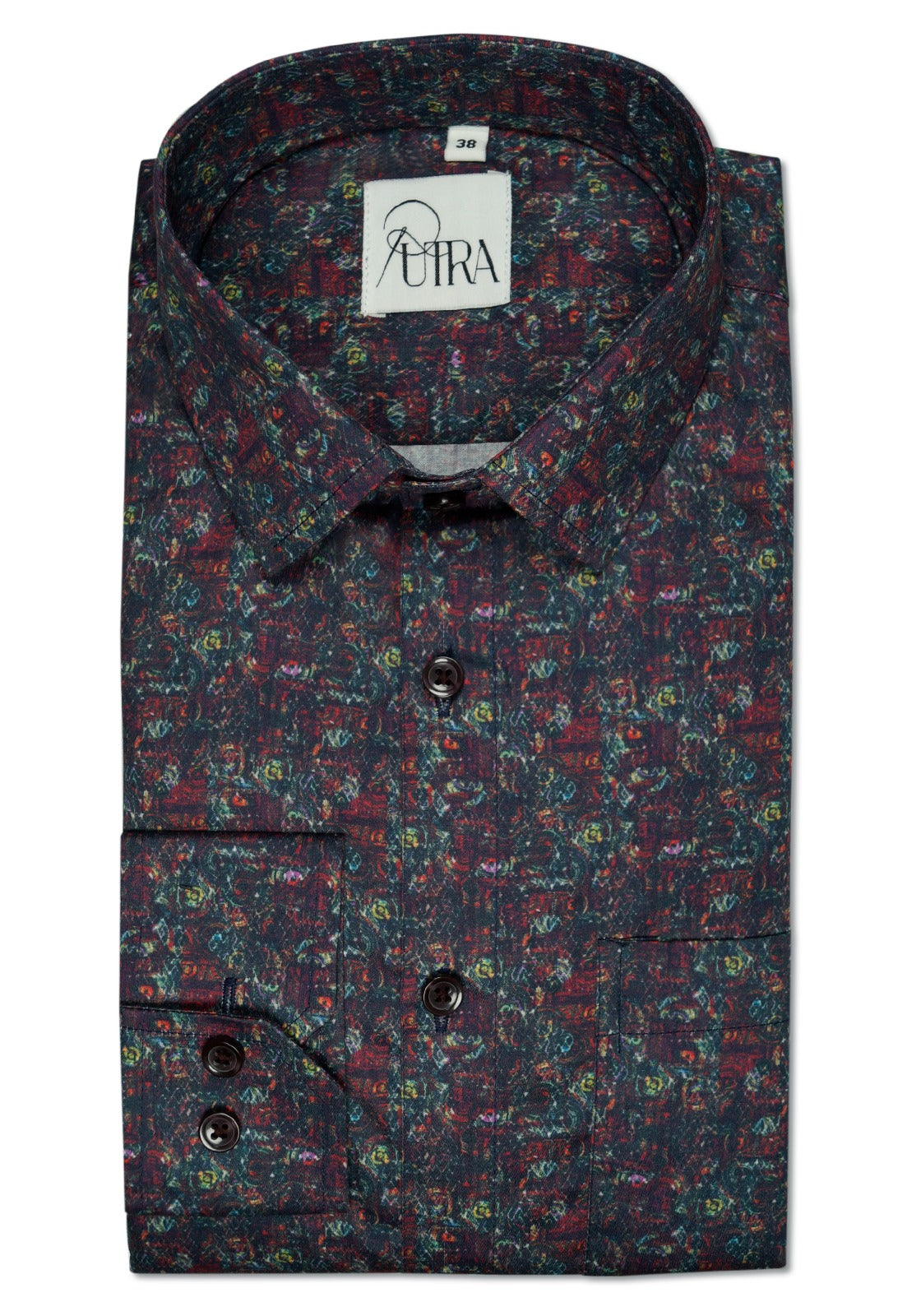 Men Multicoloured Slim Fit Digital Print Full Sleeves Casual Shirt