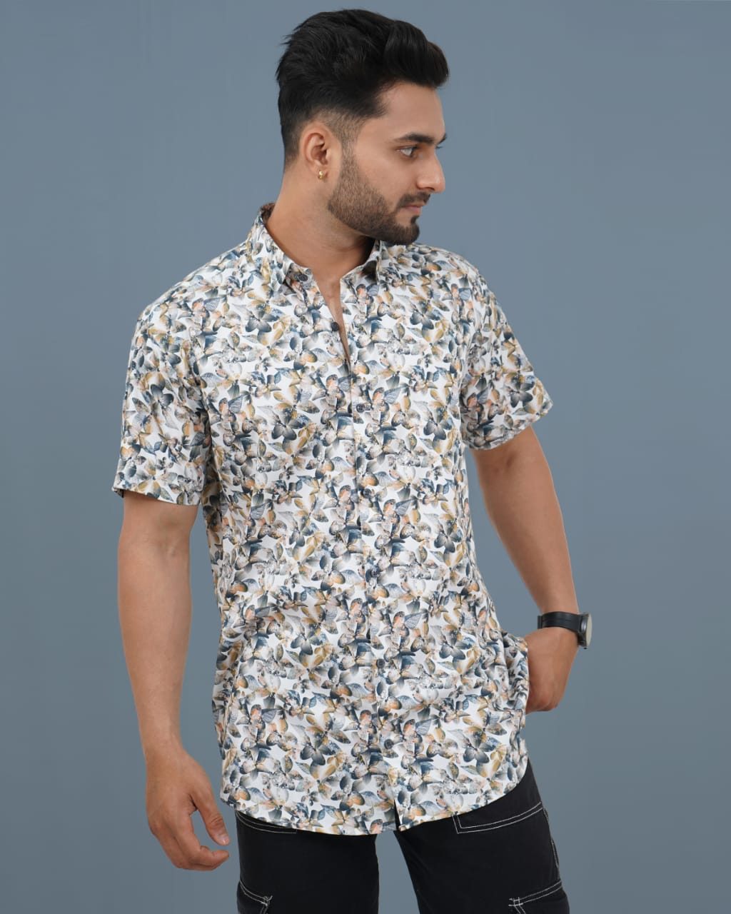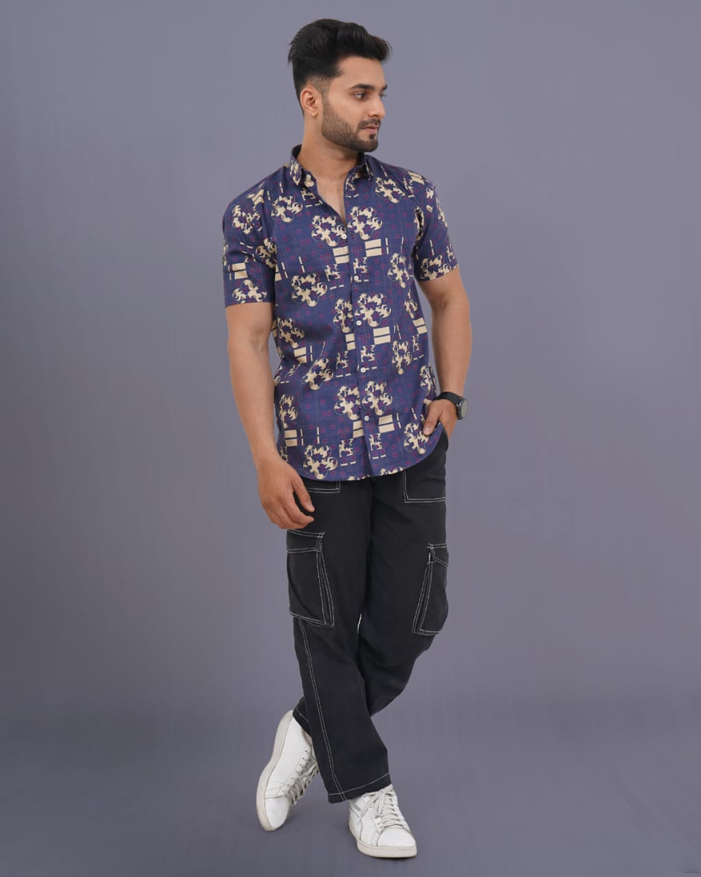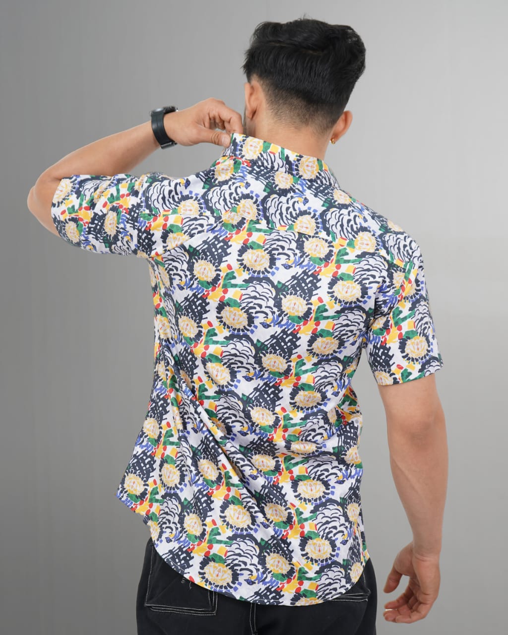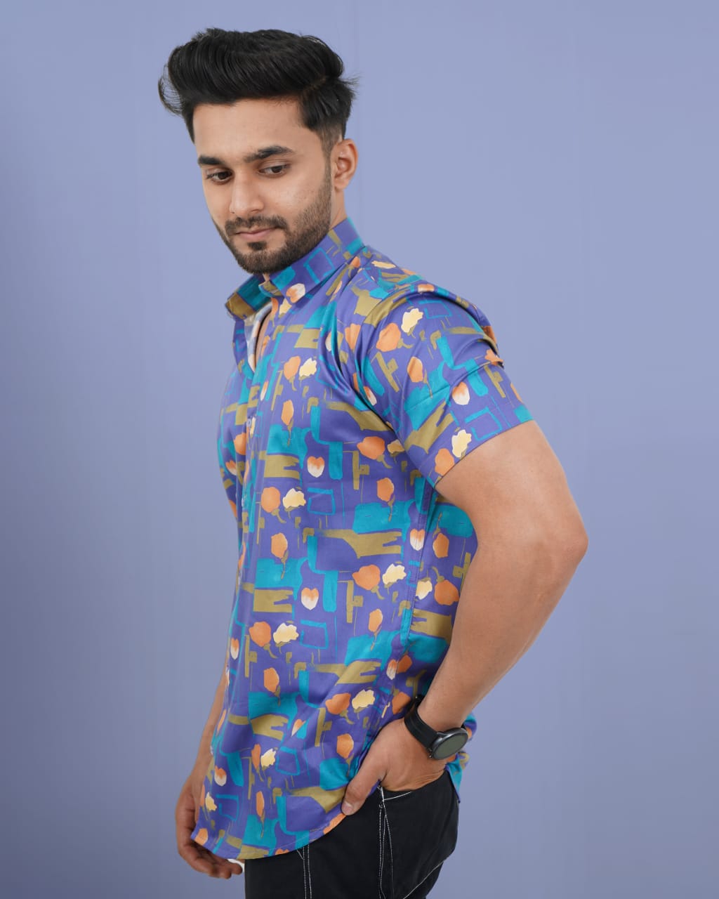 Men Multicoloured Slim Fit Digital Print 100% cotton Half Sleeves Shirt