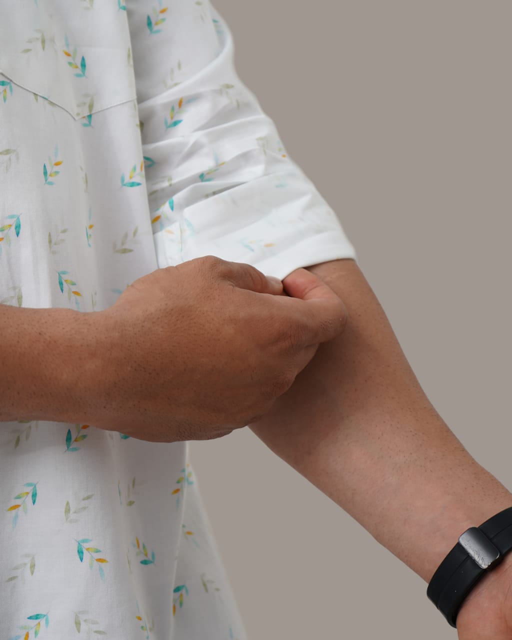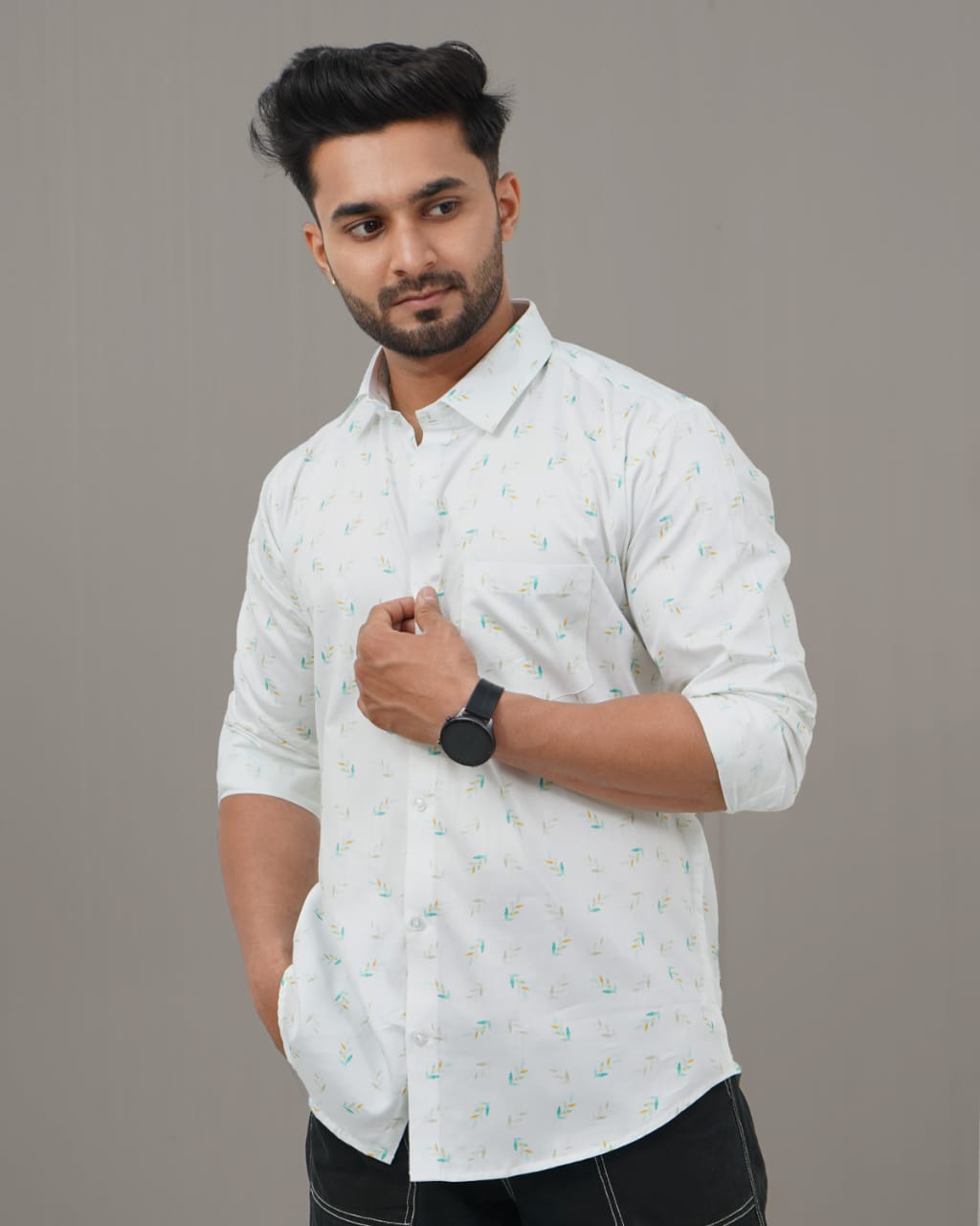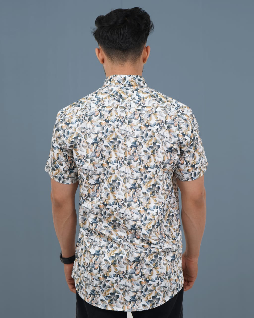 Men White And Green Slim Fit Leaf Digital Print 100% cotton shirt