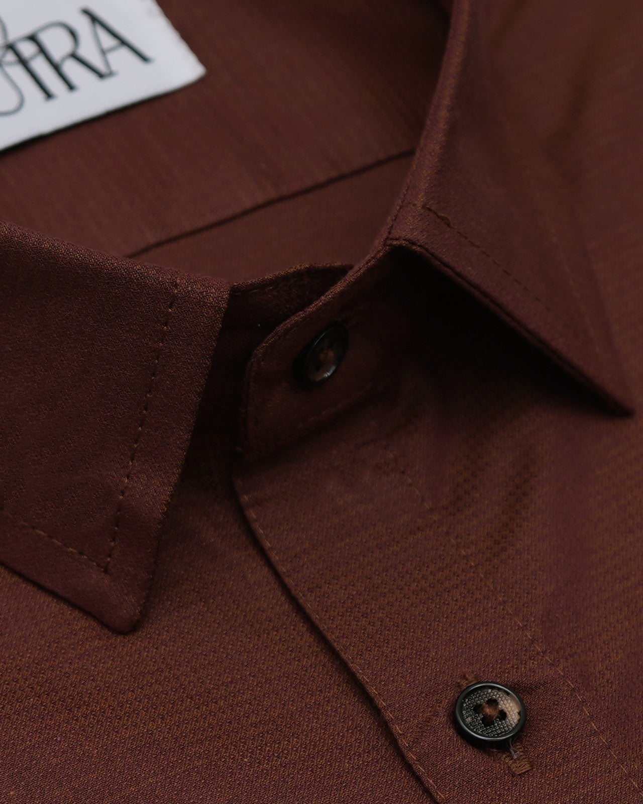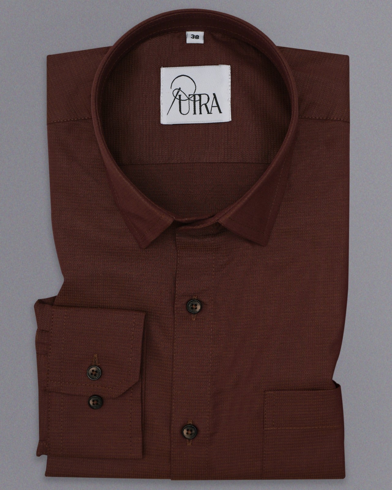 Solid Brown 100% Cotton Yarn-Dyed Formal Shirt
